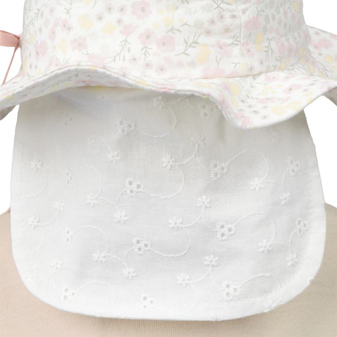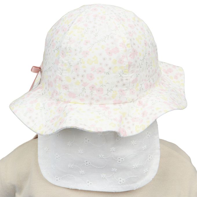 圓頂帽-小花 附防曬遮陽布-粉紅色
