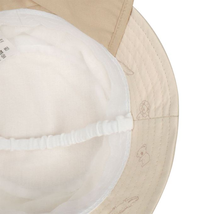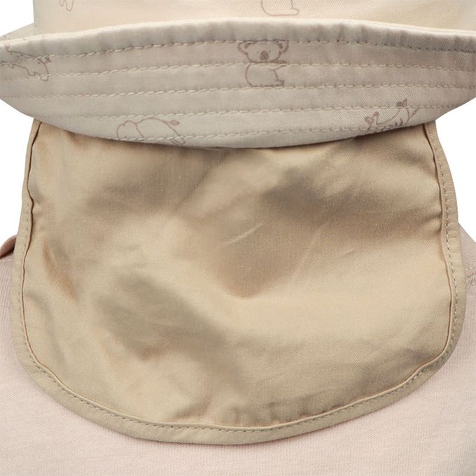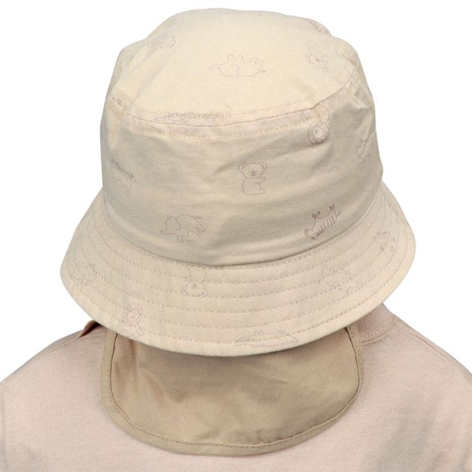 akachan honpo - 漁夫帽-附防曬遮陽布 動物印花-淺卡其色