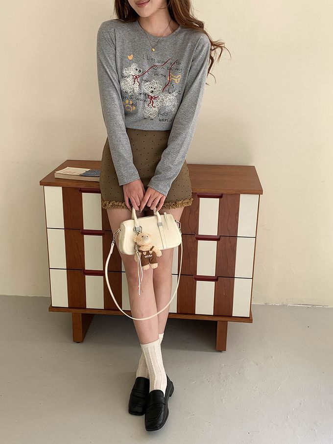 • 品名:手繪捲毛狗狗插畫長袖上衣