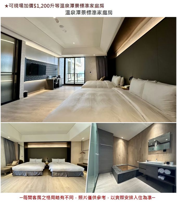 2.本券可現場加價$1,200升等溫泉潭景標準家庭房。