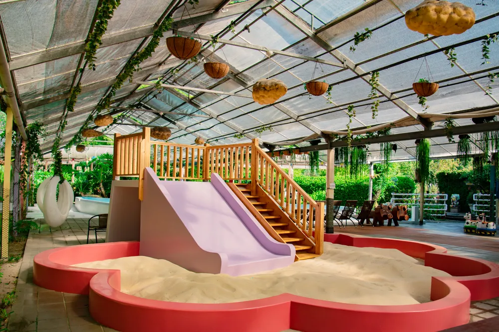 • 親子遊戲區,沙坑/泳池/溜滑梯小孩放電必備