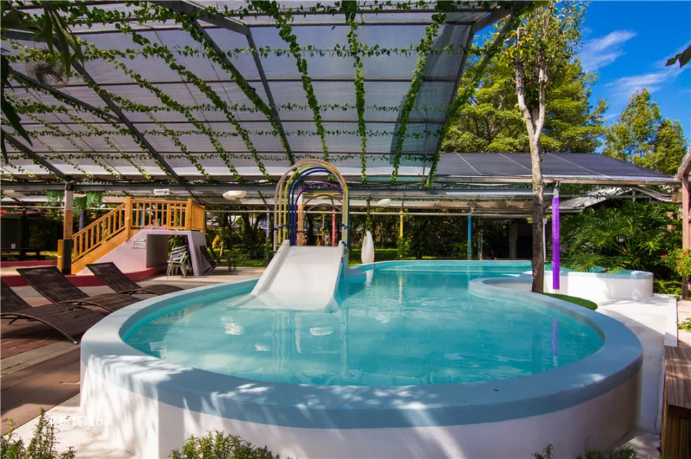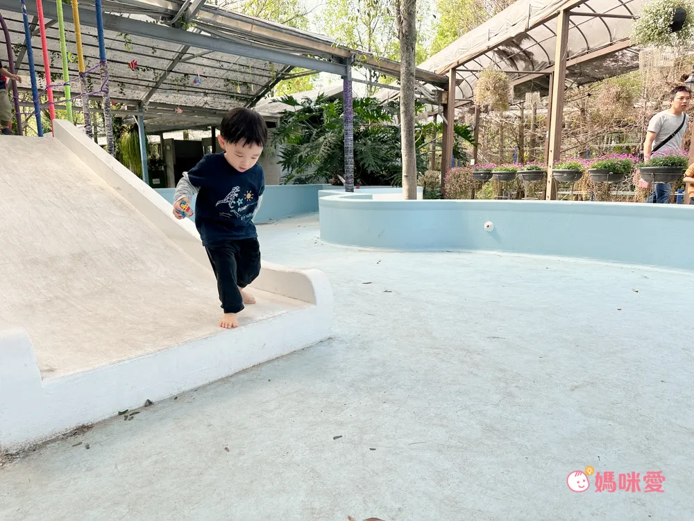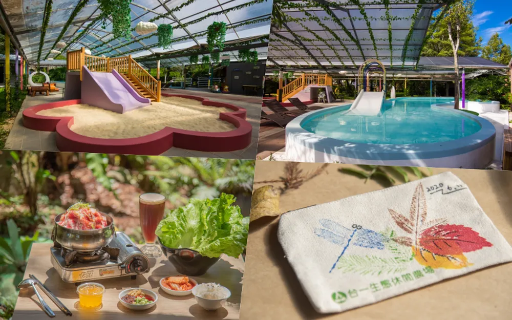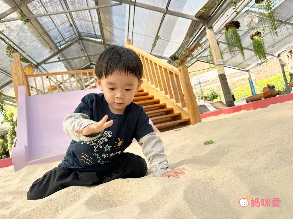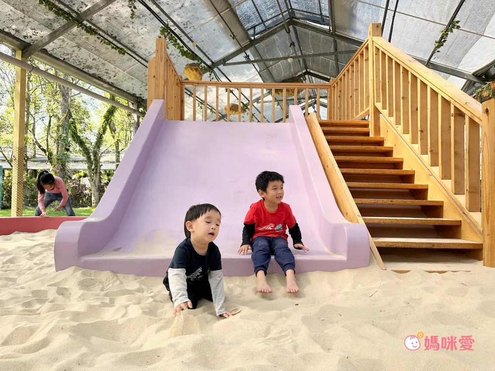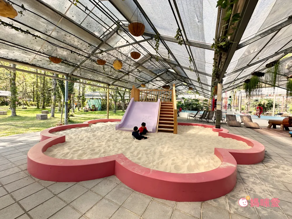 除了園區豐富的生態環境之外,也有很大的親子設施,有寶貝最愛的沙坑、泳池、溜滑梯,絕對可以好好放電一波!