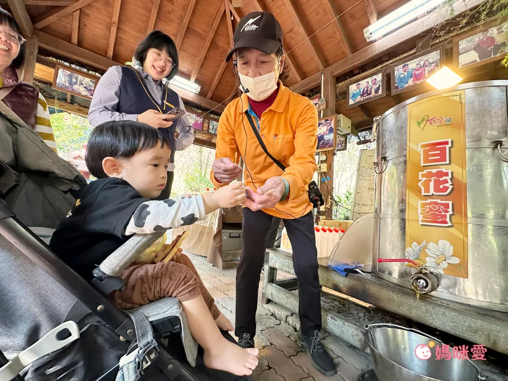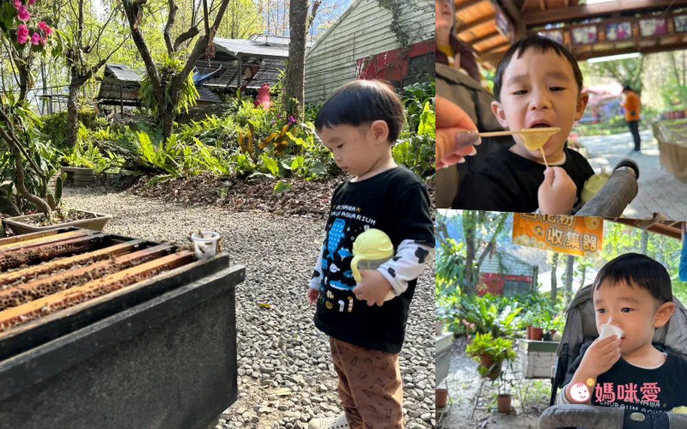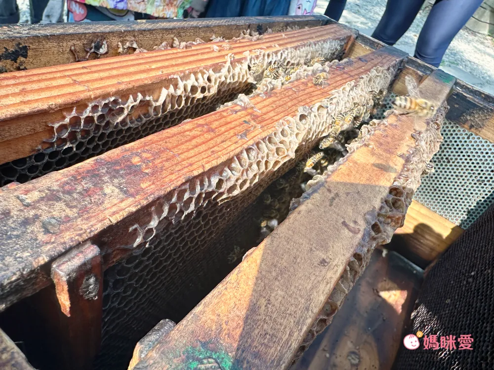 另外園區也有養殖蜜蜂,可以實際觀察蜜蜂並喝甜甜的蜂蜜,由於現在是冬天的關係,冬蜜非常的濃稠綿密,直接用牙籤就能串起蜂蜜進行品嘗