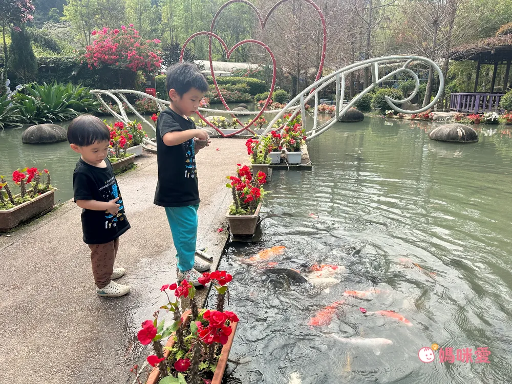 【楓樺台一渡假村】有4萬坪大的園區景觀, 裡面飼養許多自在的動物,可以餵魚、看雞鴨及擼貓!