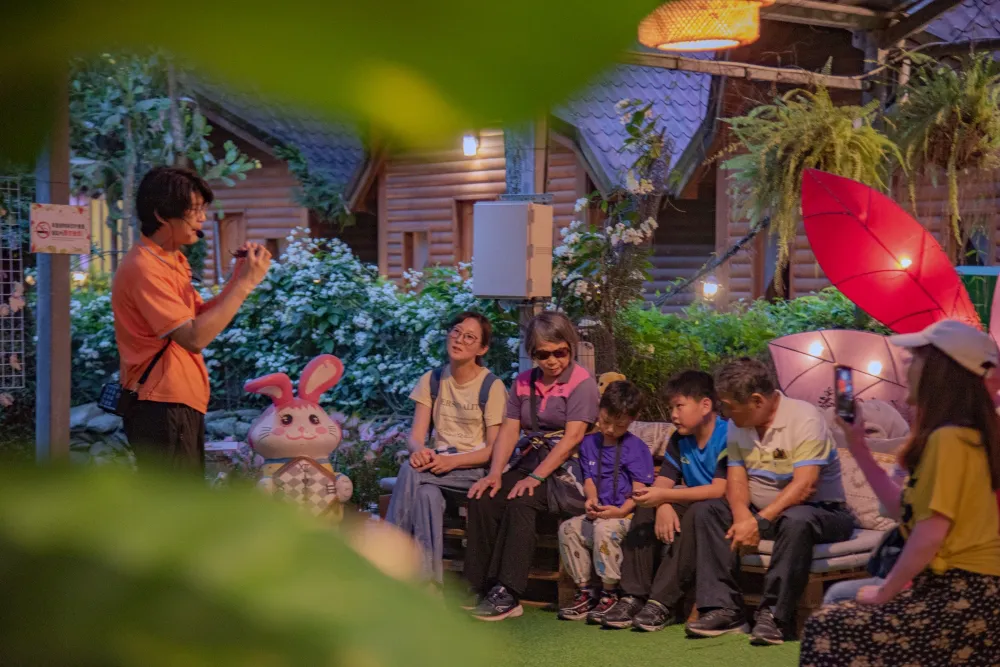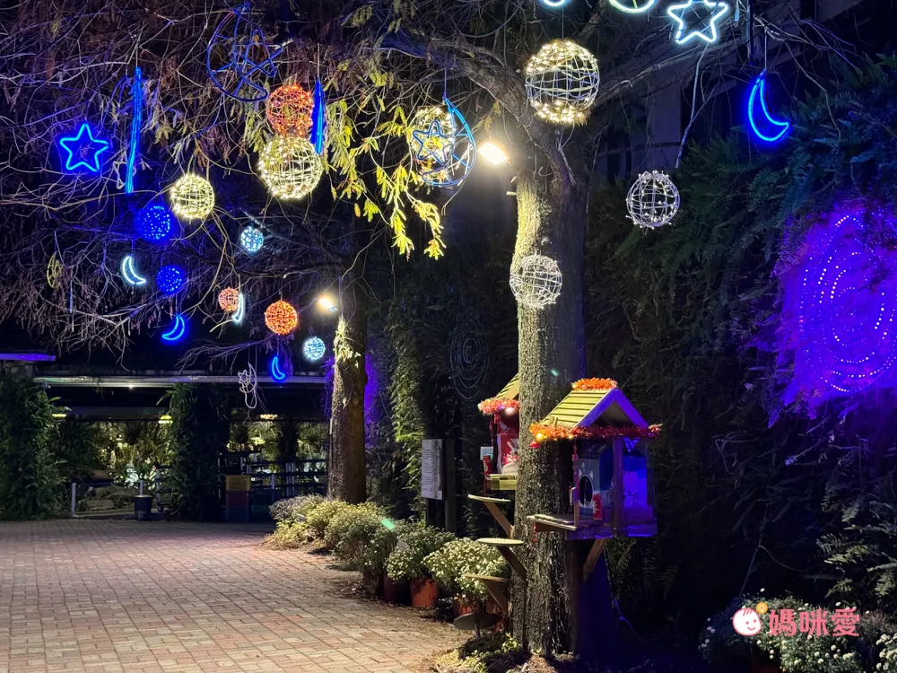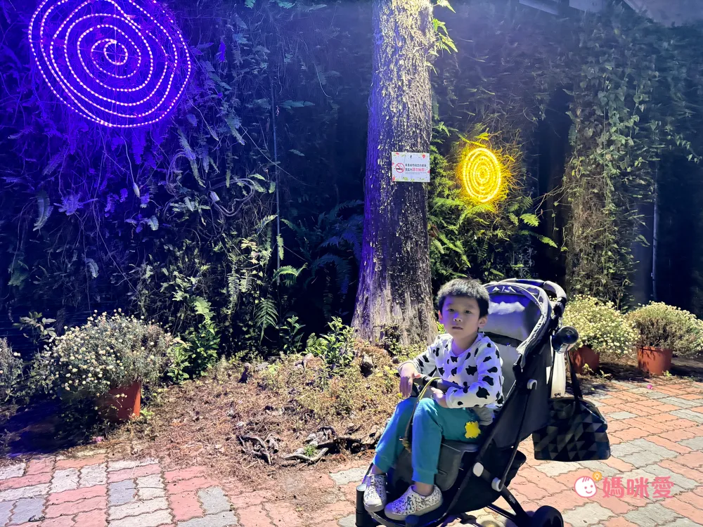 【楓樺台一渡假村】夜晚的時候另有一番風情,全區夜晚接閃亮晶晶,從任何細節都能感受到農場的用心,吃完晚餐之後帶著霂晳在園區內走走,孩子們被燈飾照耀著,好像進入了奇幻樂園。