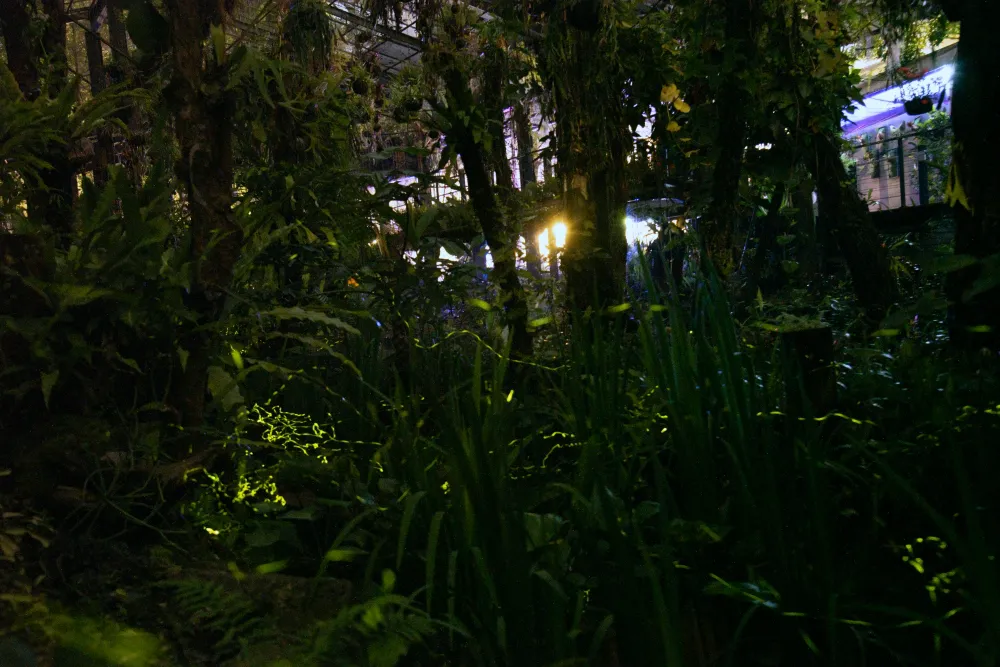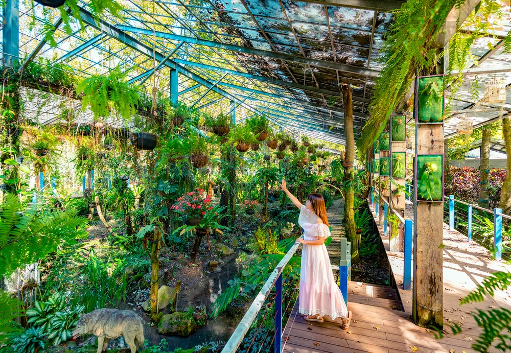 利用自然材質打造出的原始風味,彷彿置身熱帶雨林中,各種蕨類爭展綠意,館內的路徑用漂流木設計配置,得靠點平衡感闖關,館內處處充滿探索神秘的情境。