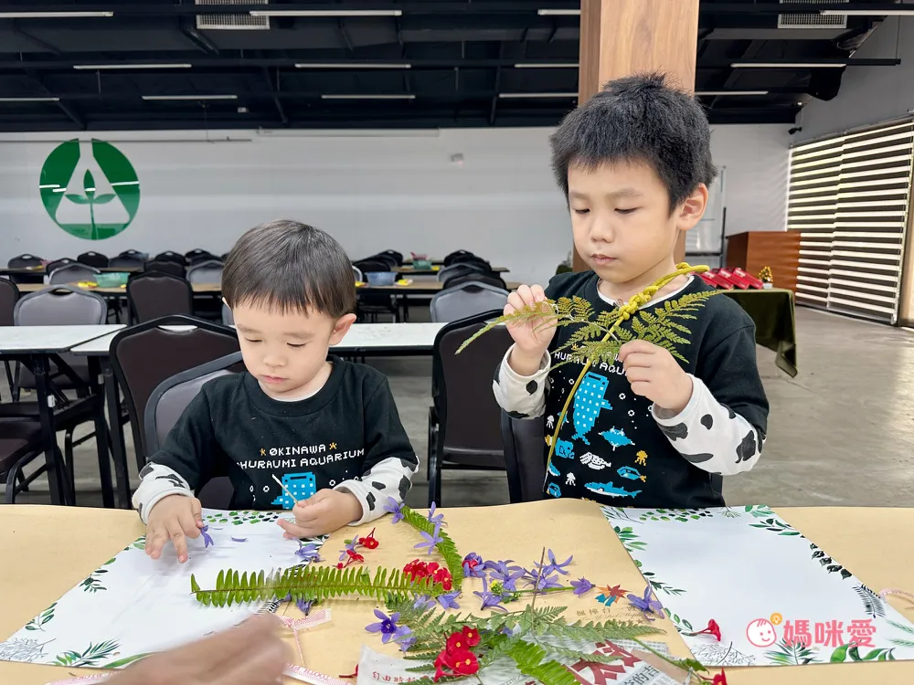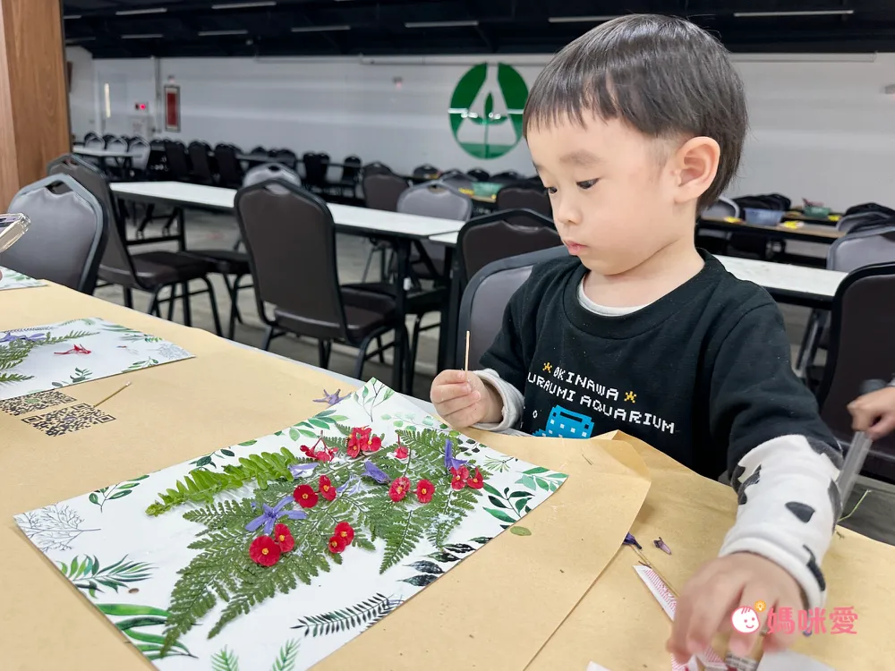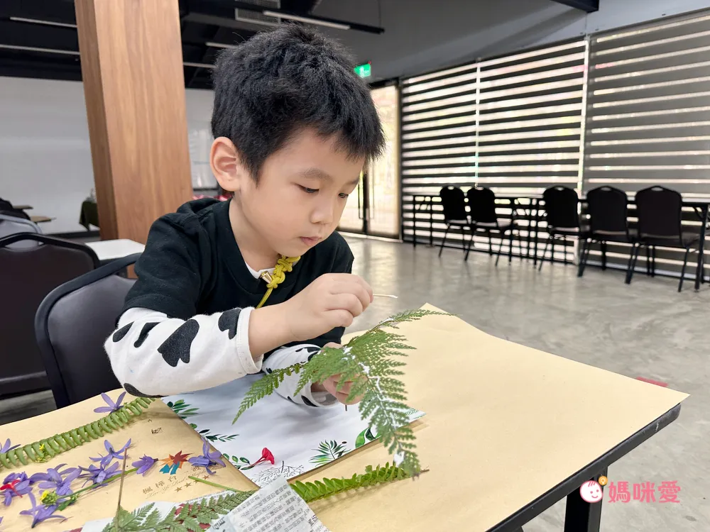 接著就是自由創作時間,透過排版及修剪,將採集到的植物及花卉黏在紙板上,就完成美麗的作品啦!晳也能獨立操作,簡單又有成就感!