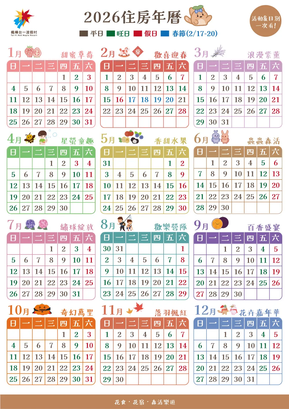 【楓樺台一渡假村】是一個四季都有各式各樣不同活動的複合式休閒園區,只來玩一次絕對不夠的呀!想要好好享受大自然,又可以悠閒休憩又放電,一條龍式的完美行程,非此莫屬!