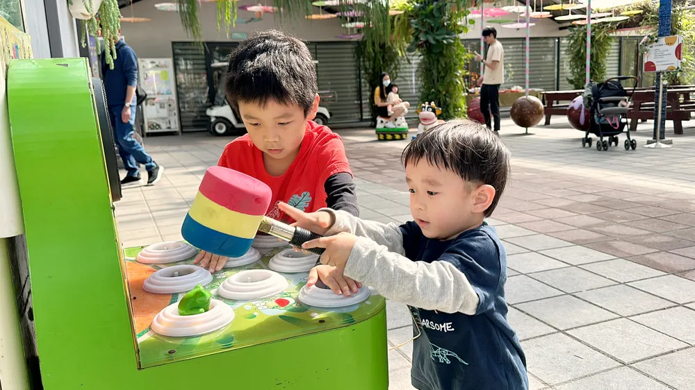 沙坑旁還有放置一些收費遊具,是爸媽以前小時候的遊具,現在看自己的孩子玩,孩提時期的懷舊感油然而生。