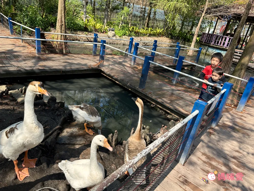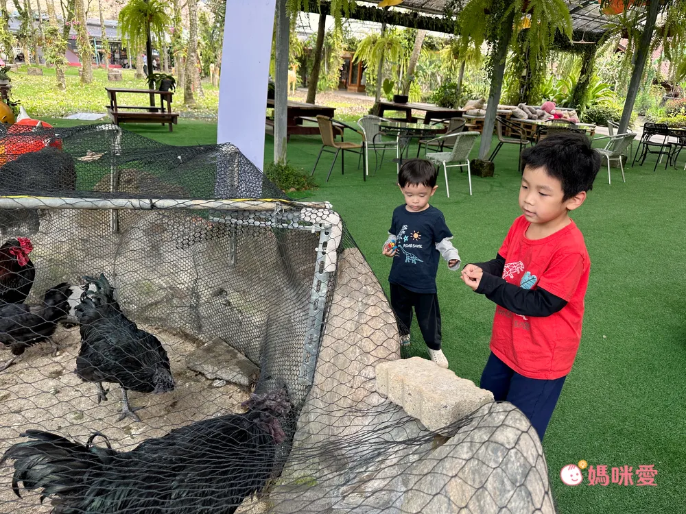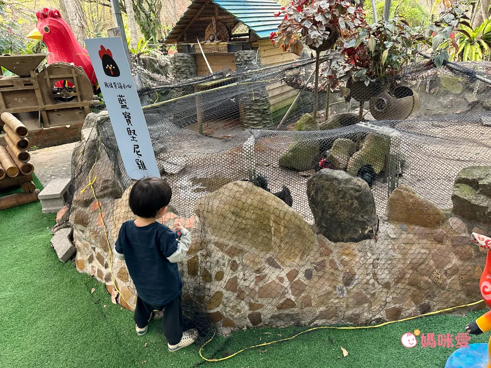 園區內還飼養了各種小動物,可以讓孩子們近距離接觸喔!我們那天看到了藍寶堅尼雞、還有天鵝們~