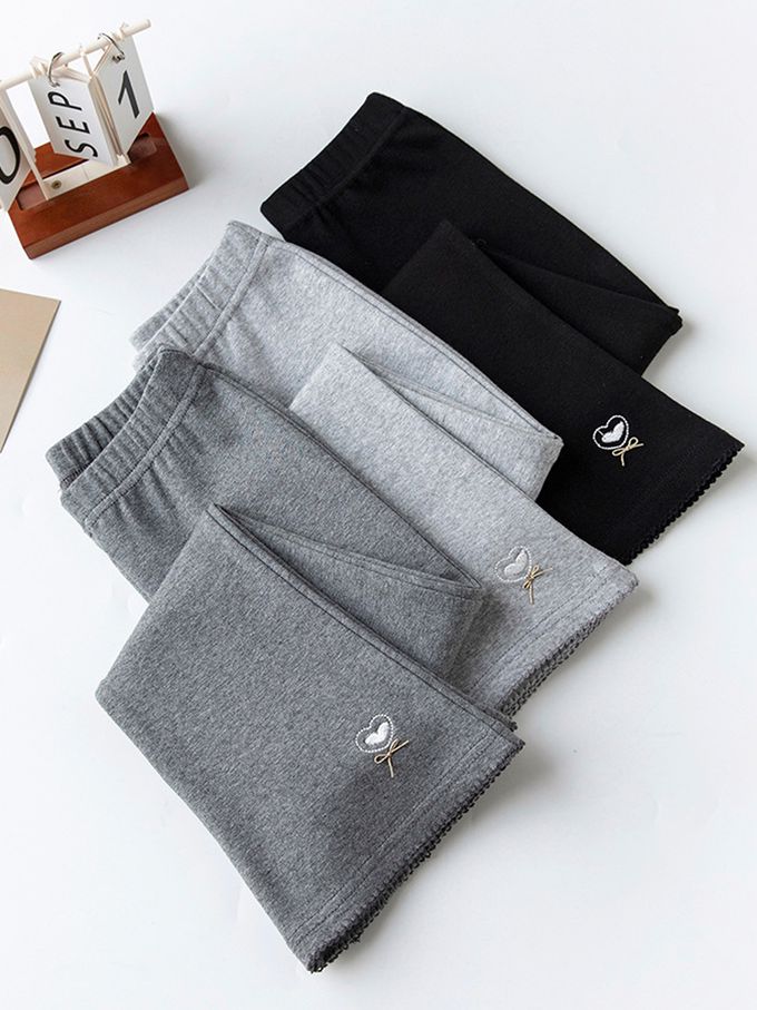 FANMOU - 喇叭內搭褲-愛心蝴蝶結-淺灰
