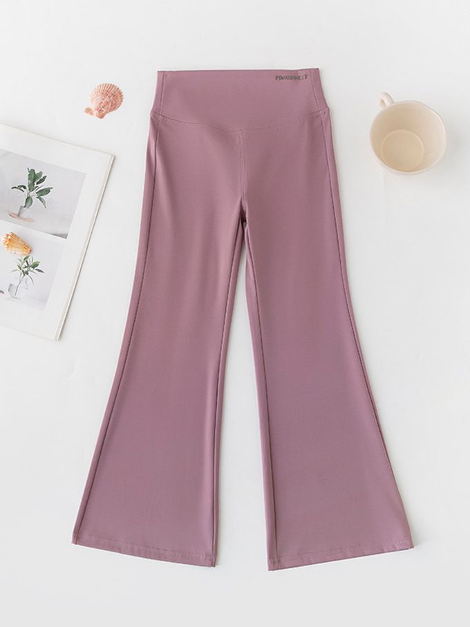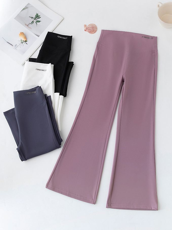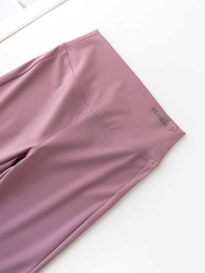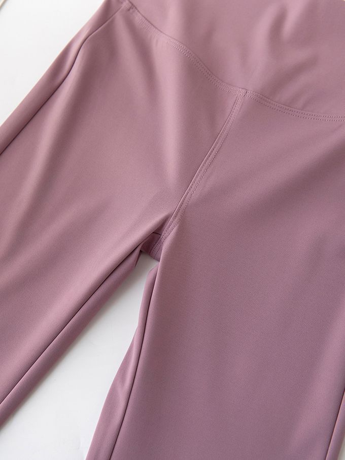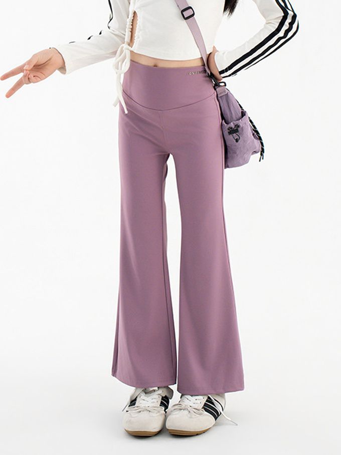 高彈3D剪裁運動喇叭褲-紫粉