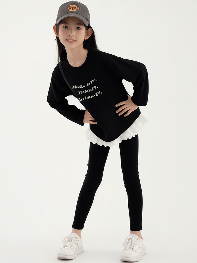FANMOU - 高彈鬆緊腰頭內搭褲-文字款-黑色