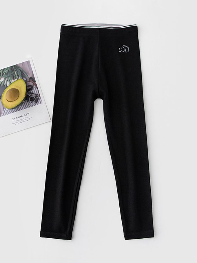 高彈鬆緊腰頭內搭褲-印花款-黑色