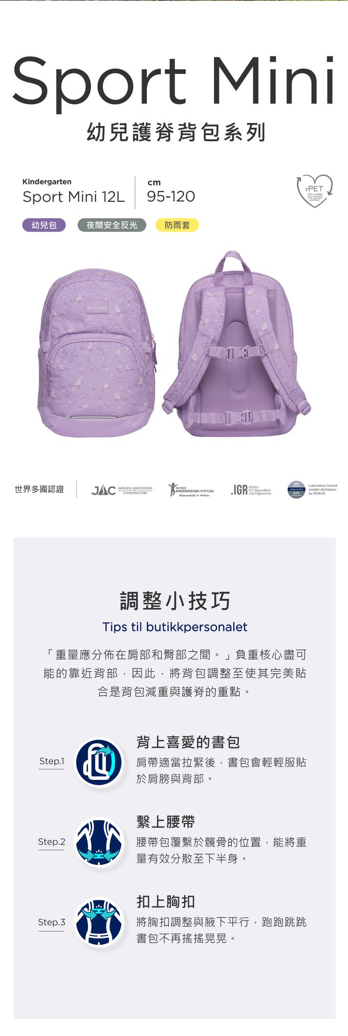 品名:Beckmann-Sport Mini 幼兒護脊背包 12L - 藍色拼接