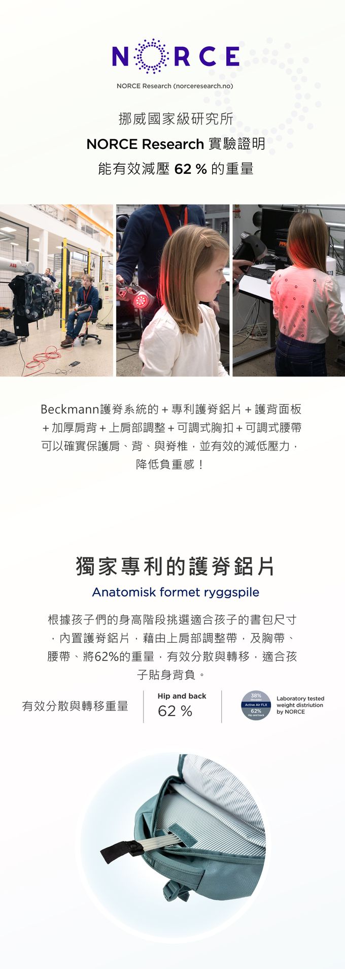 內置護脊鋁片,有效轉移書包重量