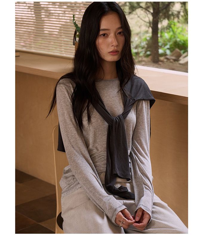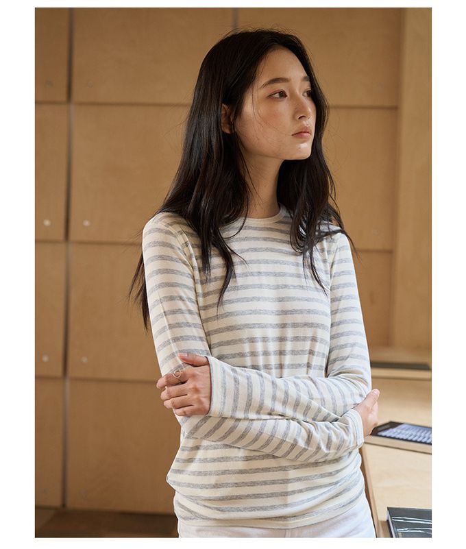 KPUWARM - 呼吸感6.3%羊毛天絲輕柔圓領長袖上衣-灰