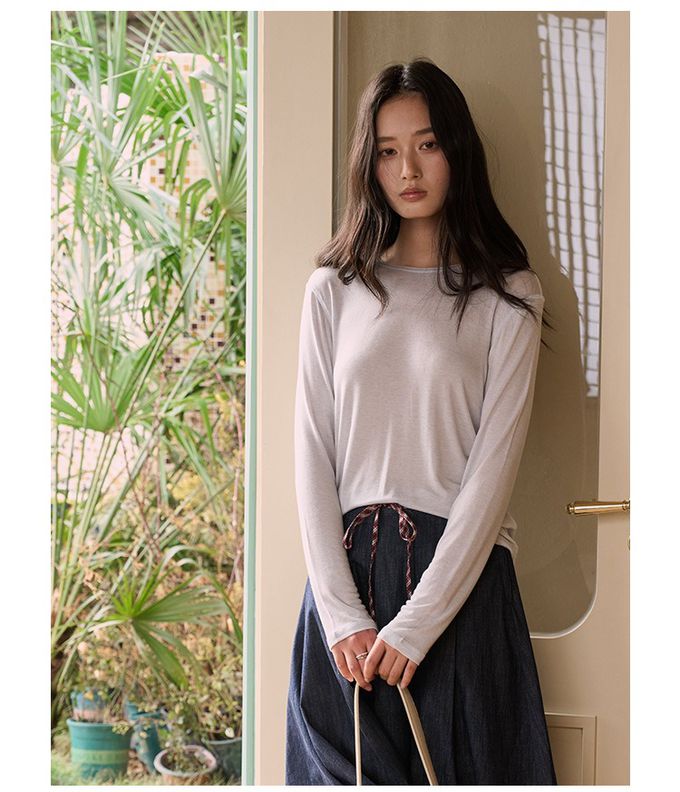 • 品名:呼吸感6.3%羊毛天絲輕柔圓領長袖上衣