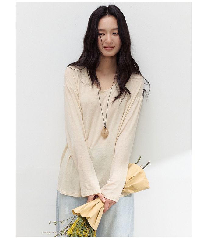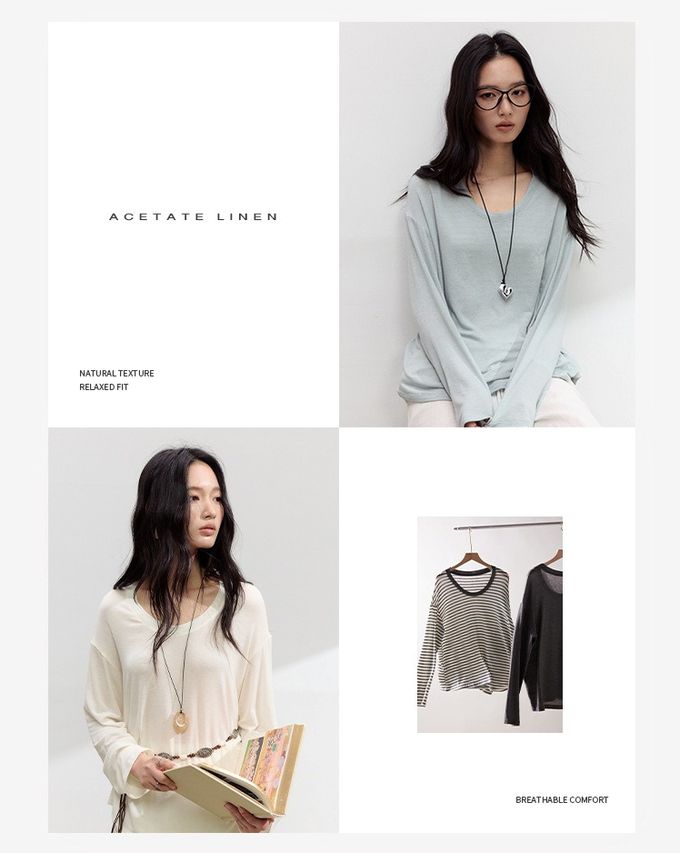 • 品名:雲感天絲混亞麻U領寬鬆長袖上衣