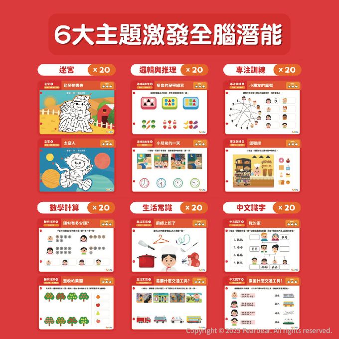 全腦開發可擦拭遊戲套組-紅盒(5歲以上)