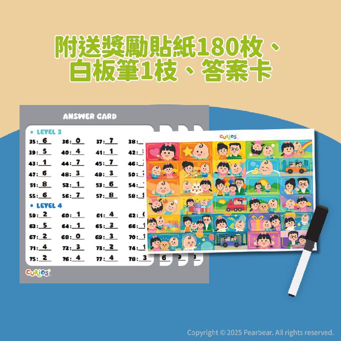 附贈白板筆、獎勵貼紙與答案卡,增強成就感