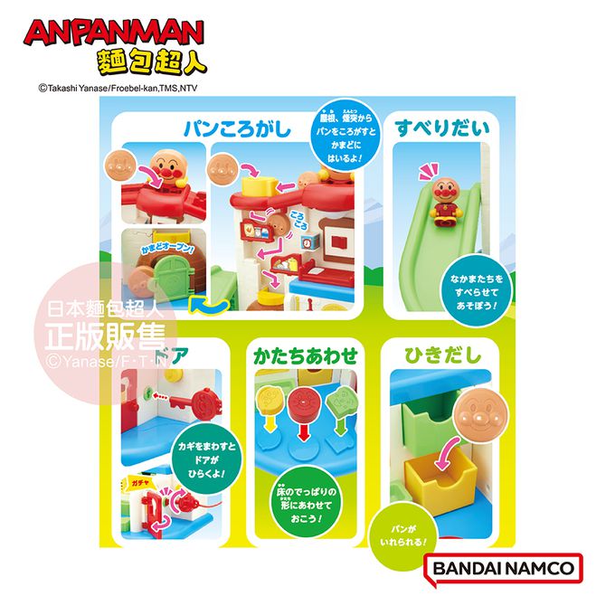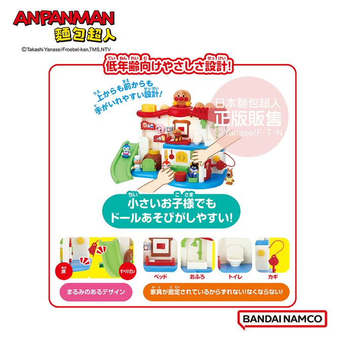 另可搭配同系列「我的第一個麵包超人趣味小屋人偶組」配件(另購)一起玩耍喔!更豐富更好玩!!
