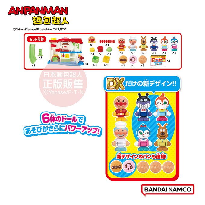 內附6個人偶公仔(麵包超人、果醬爺爺、起司、細菌人、紅精靈、藍精靈),