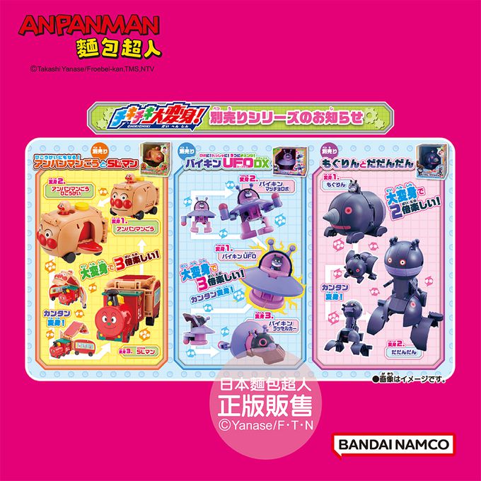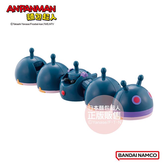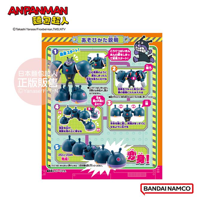 1.將鋼鐵細菌人的臉往下押,變身開始!如圖所示臉押下後,請將本體轉向後方。※鋼鐵細菌人的手部無法轉動。