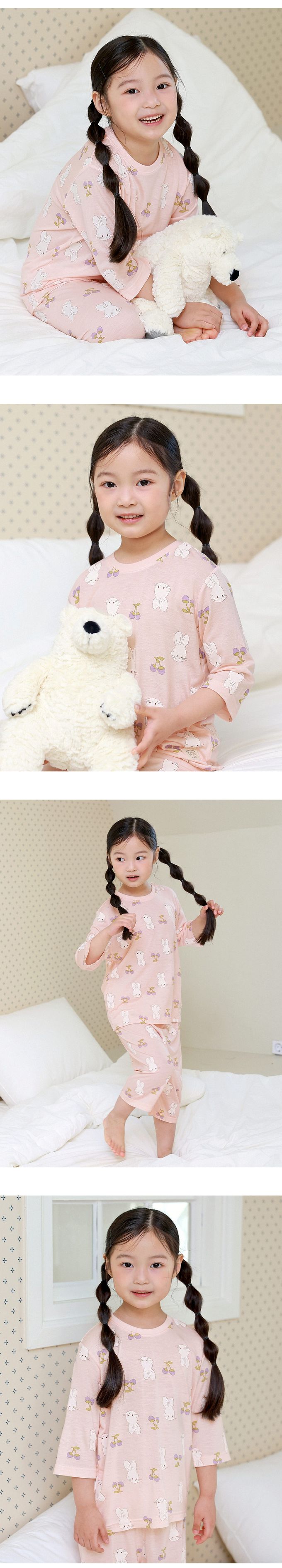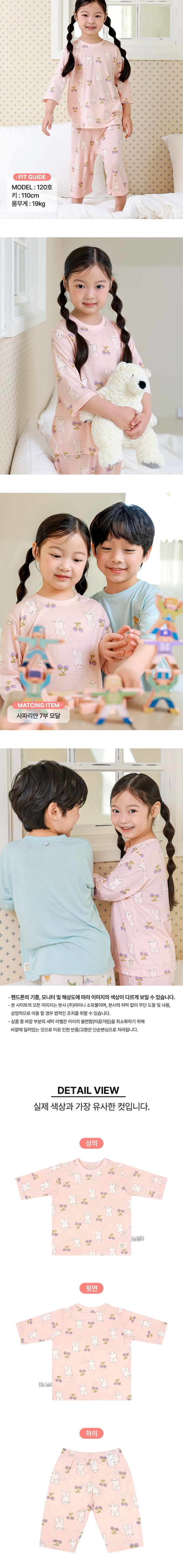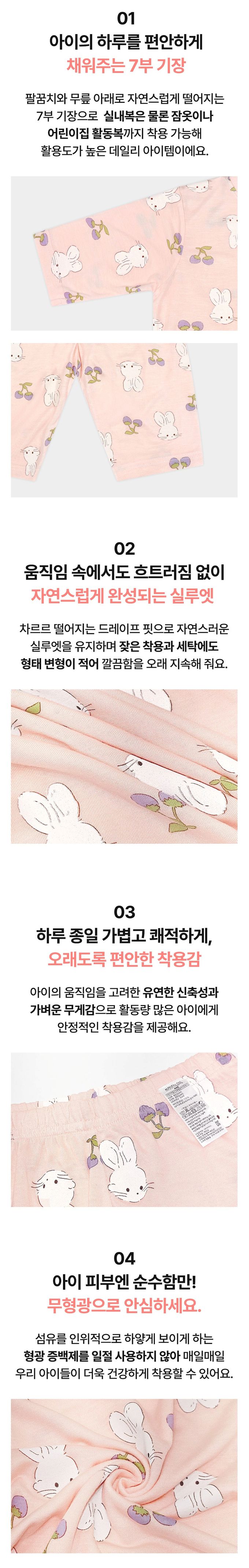 (01.) 帶來舒適體驗的七分袖長度。袖口與褲管自然落於手肘與膝下,不僅適合作為居家服,亦可作為睡衣或幼兒園活動服
