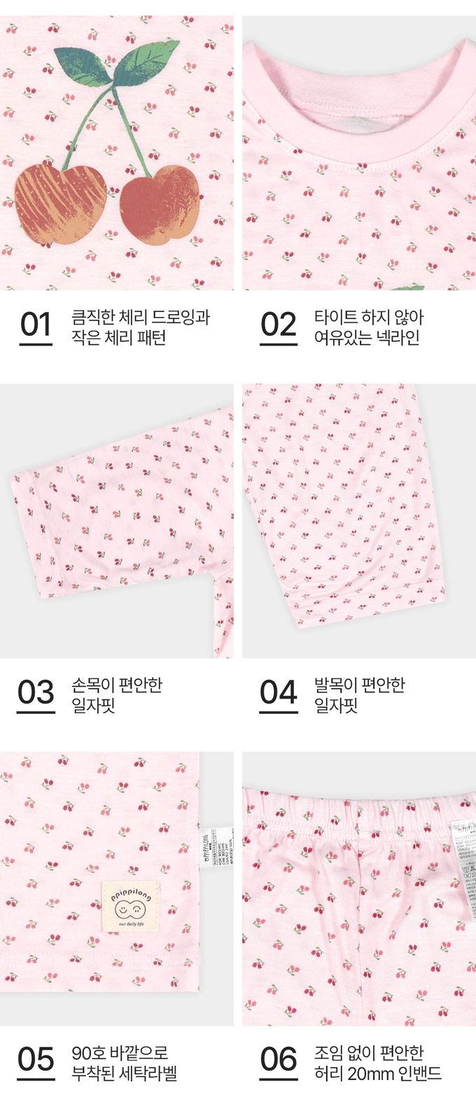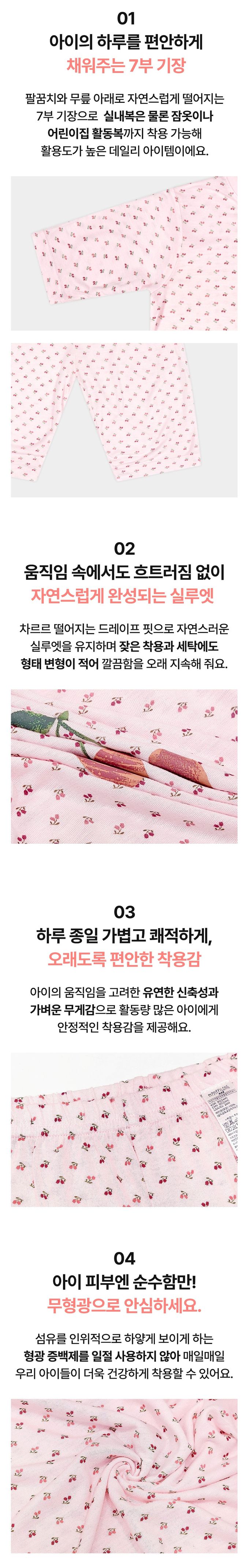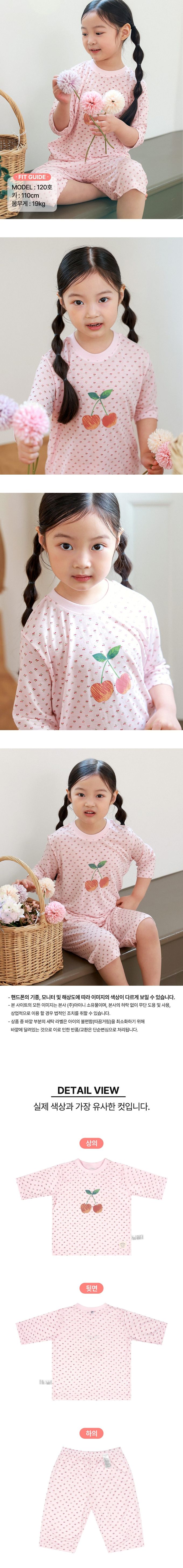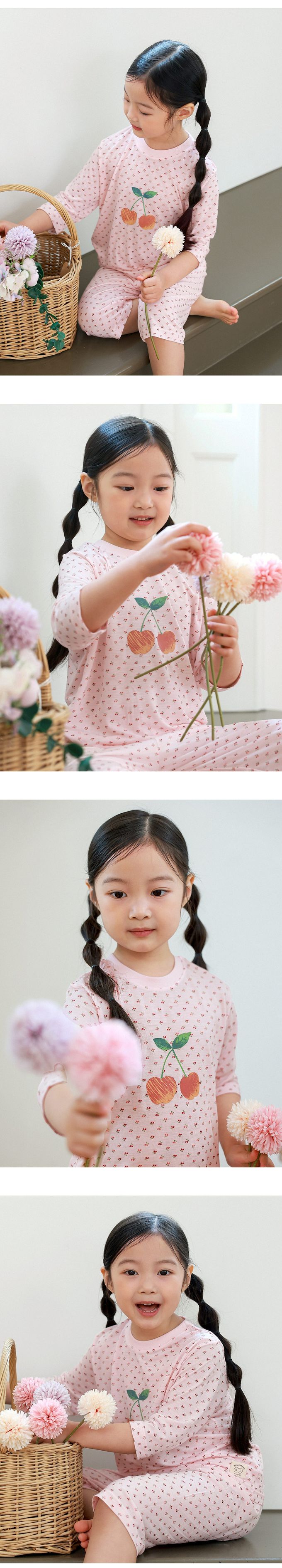 韓國 Ppippilong - 親膚莫代爾7分袖家居服/睡衣-小花櫻桃印-粉