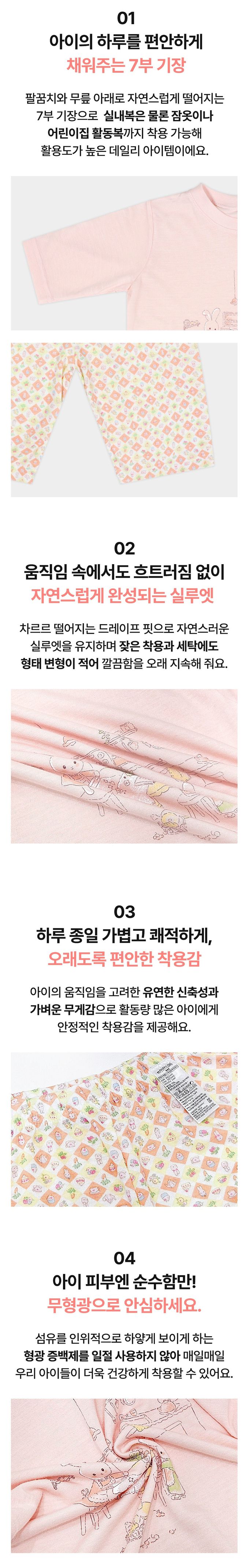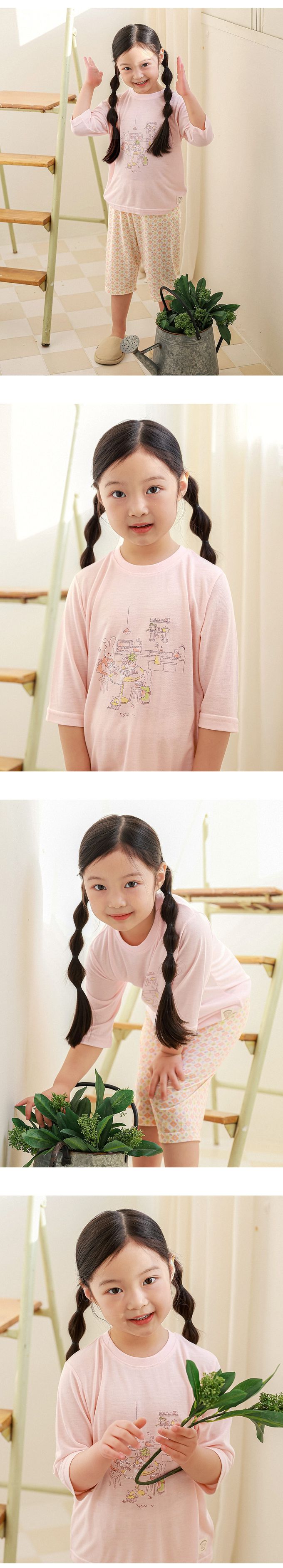 韓國 Ppippilong - 清涼嫘縈透氣7分袖家居服/睡衣-兔兔日常插畫-粉