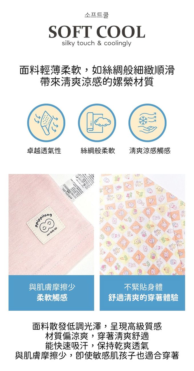 • 嫘縈涼感材質,輕薄柔軟、舒爽不悶熱