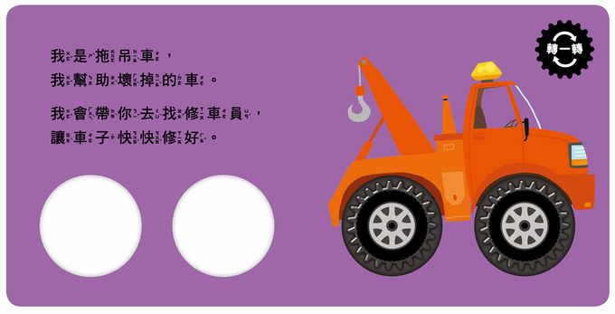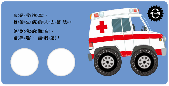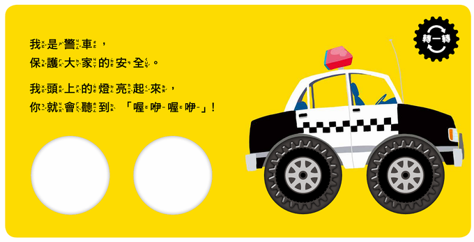消防車、警車、救護車……書中的每個救援英雄,搭配車輪小機關,讓孩子每次翻頁,都想用小手轉轉看,享受「玩」的樂趣!