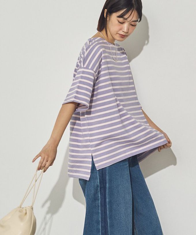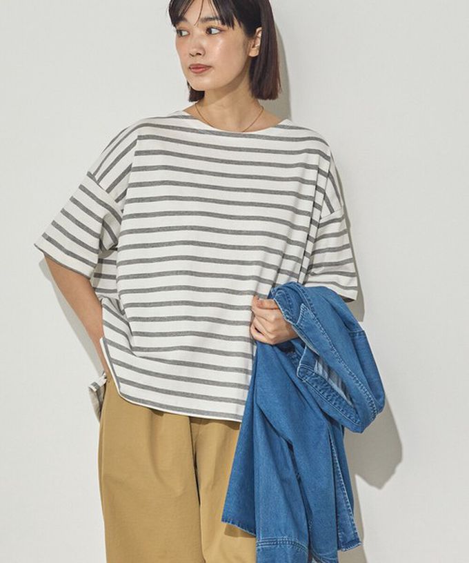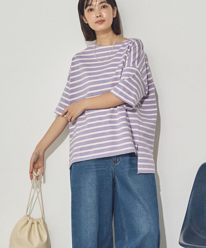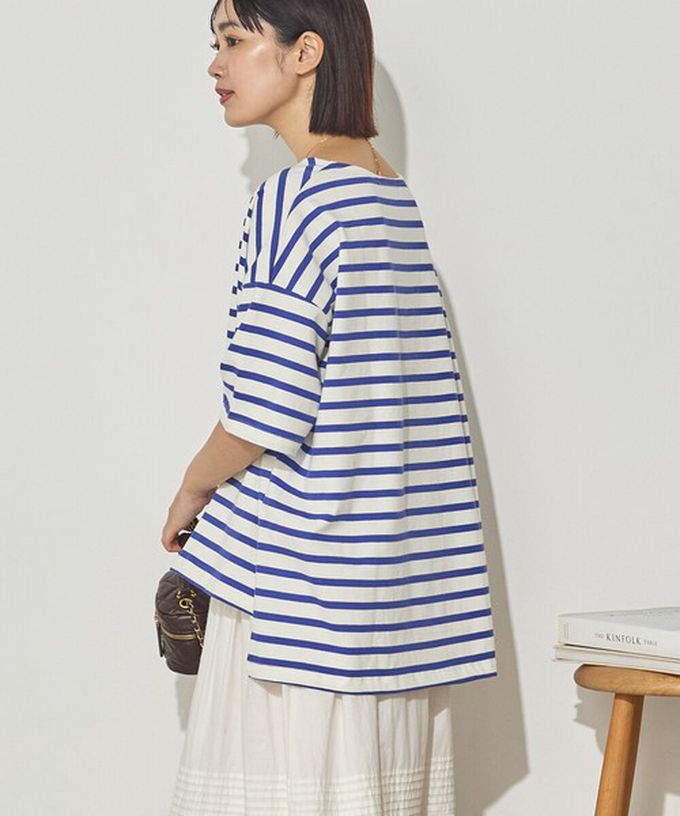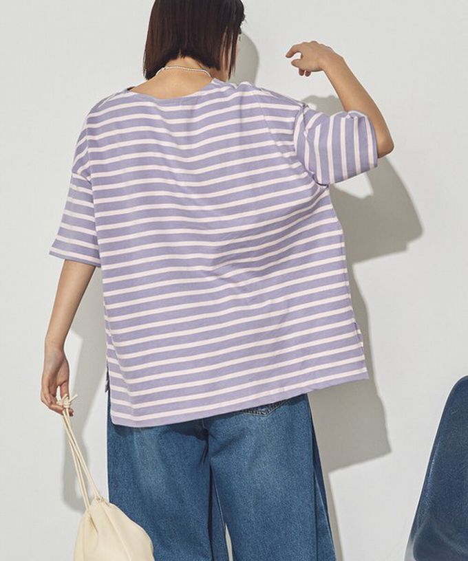• 品名:100%棉 定番條紋落肩五分袖上衣