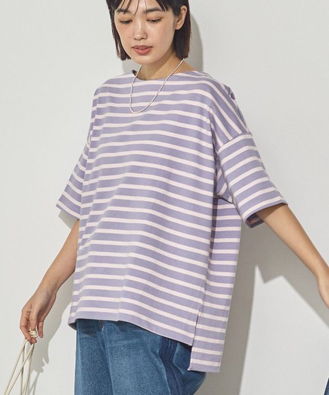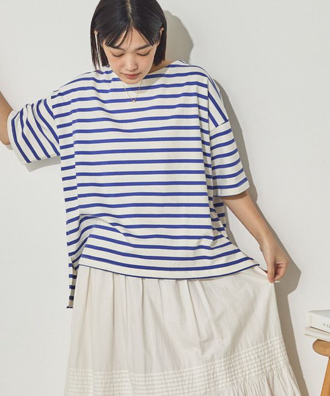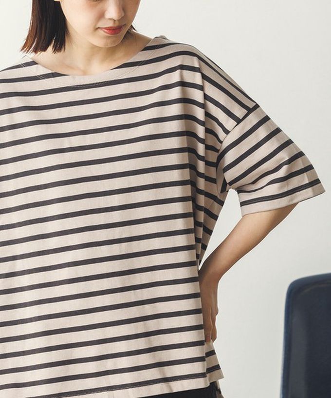 • 品名:100%棉 定番條紋落肩五分袖上衣