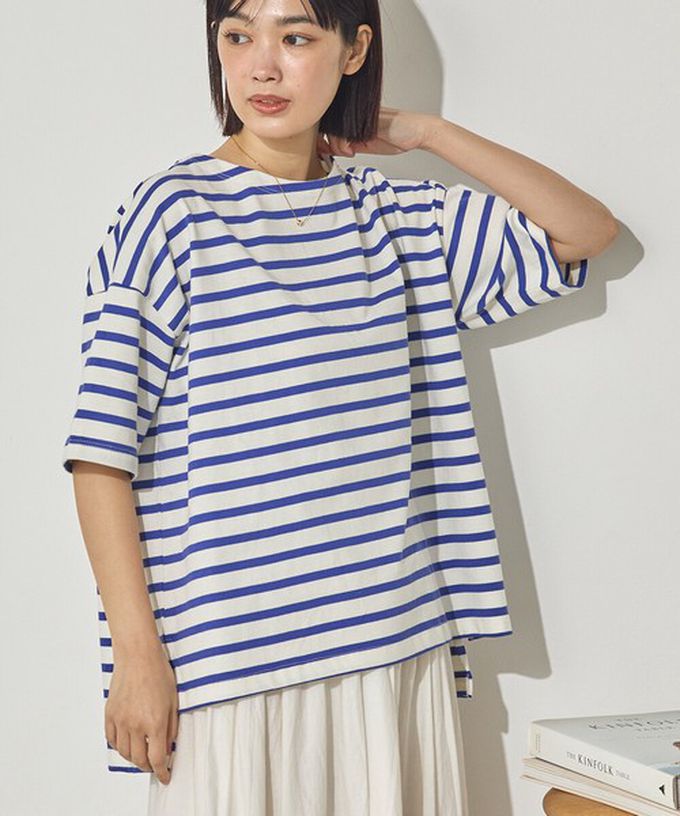 • 品名:100%棉 定番條紋落肩五分袖上衣