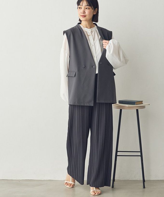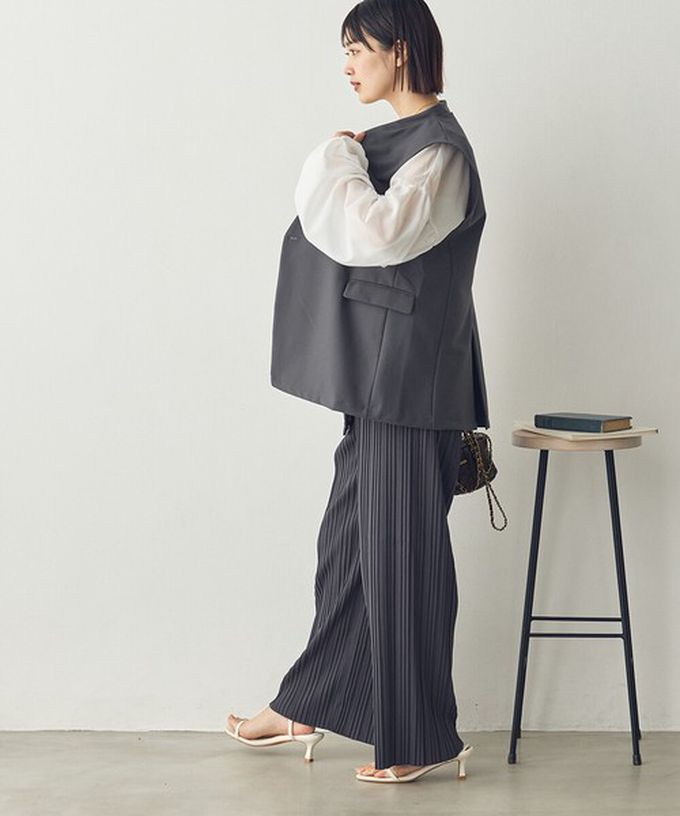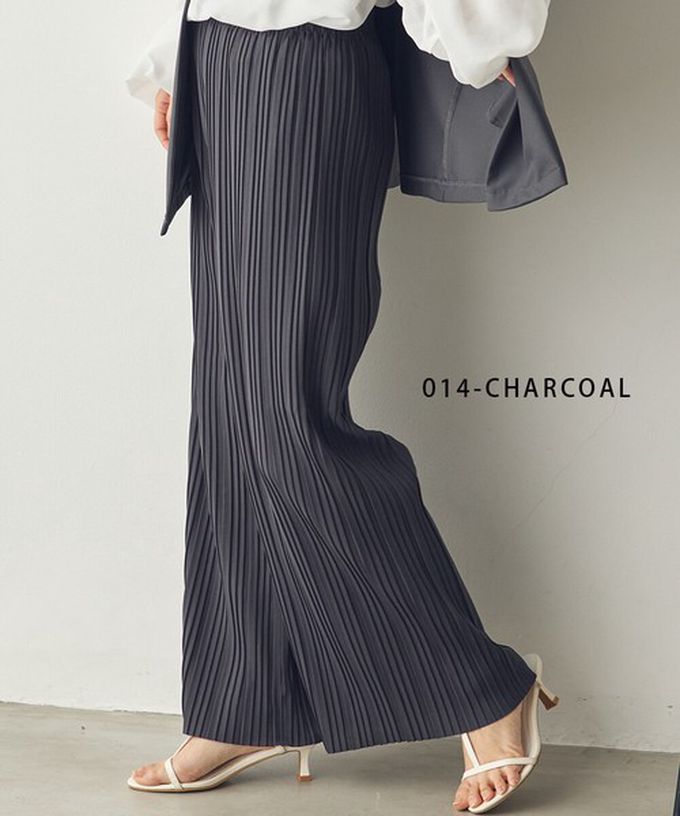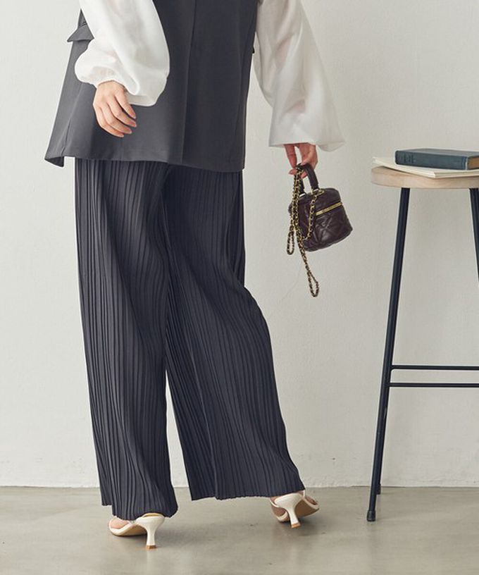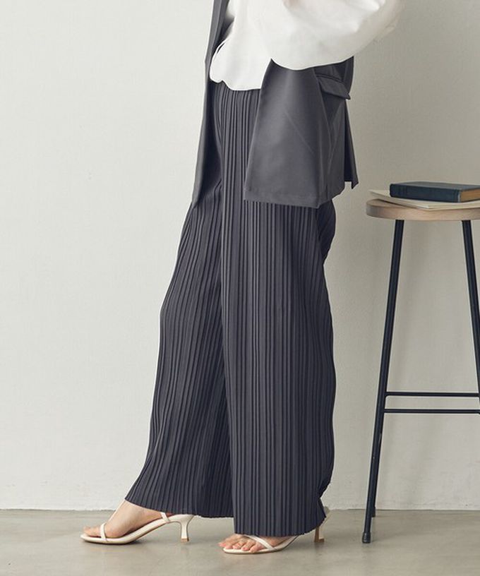 日本 Sans Souci 34+ - 細摺搖曳優雅寬褲(全腰鬆緊)-炭灰 (M)