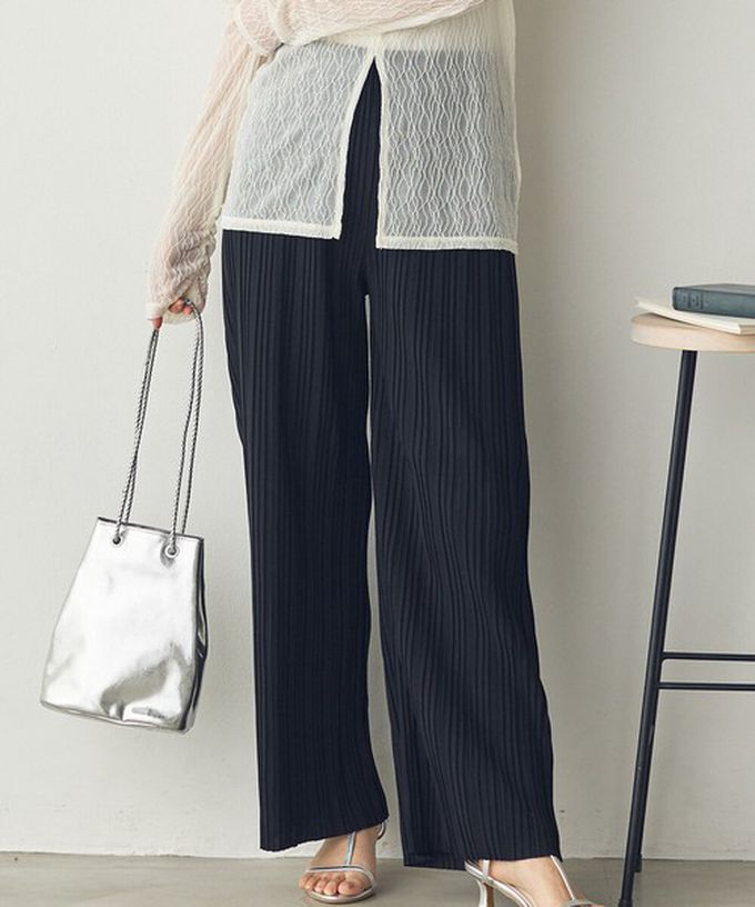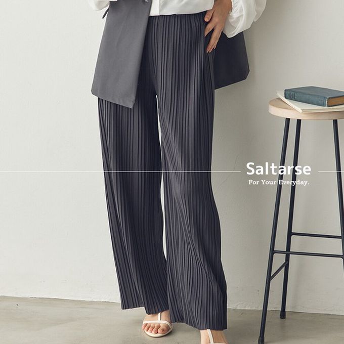 • 品名:細摺搖曳優雅寬褲(全腰鬆緊)