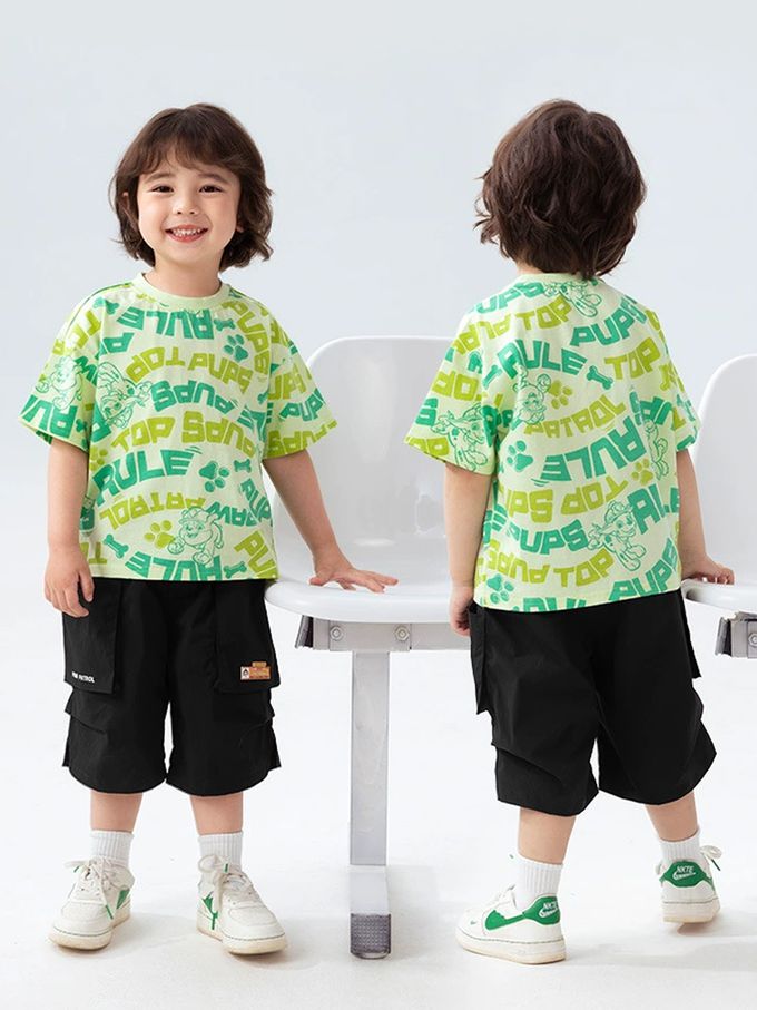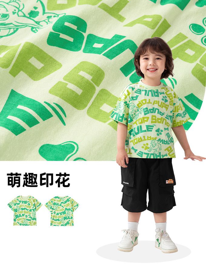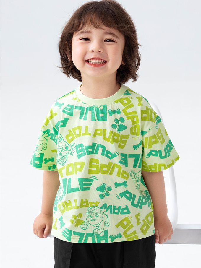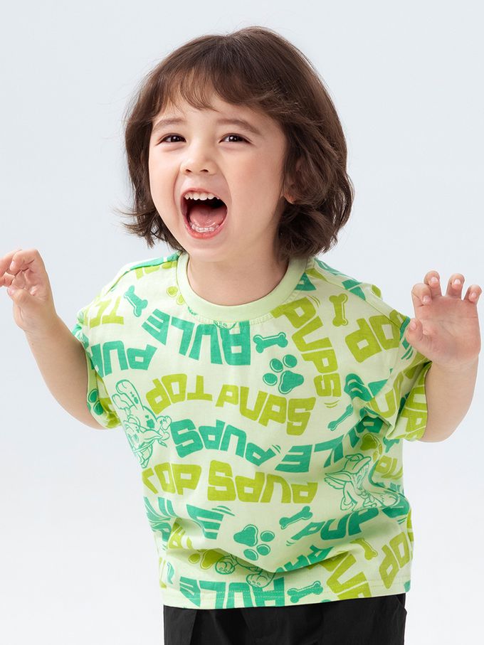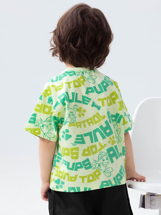 卡通汪汪隊純棉滿版印花短袖上衣-淺綠