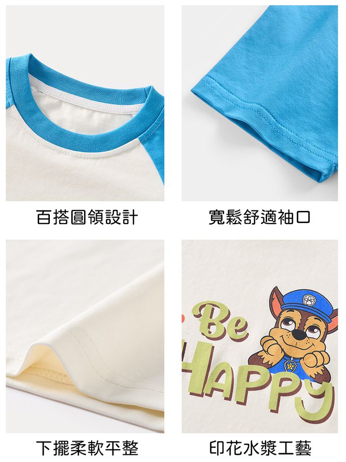 品名:卡通汪汪隊拼袖撞色短袖上衣