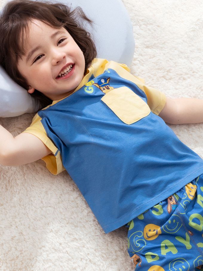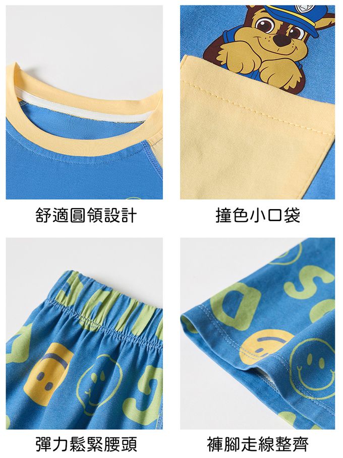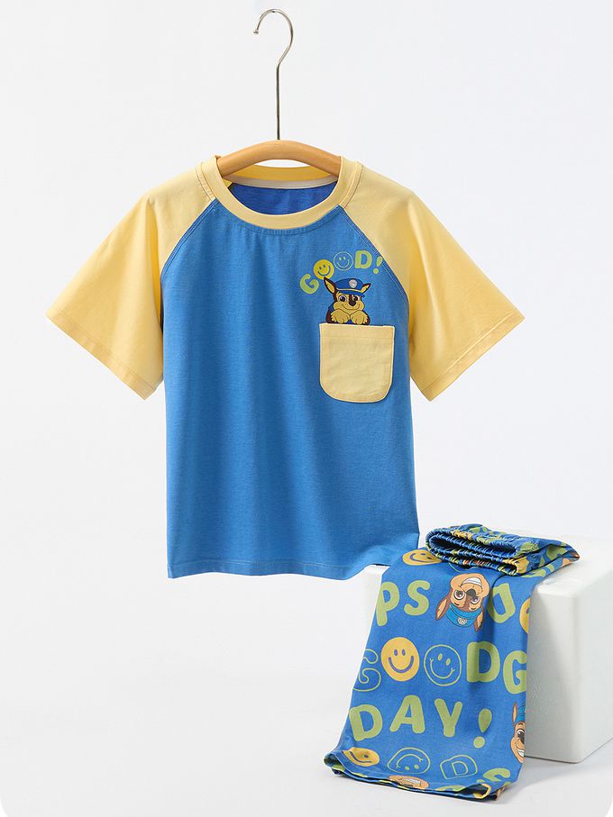 卡通汪汪隊萊賽爾短袖家居服套裝-撞色藍
