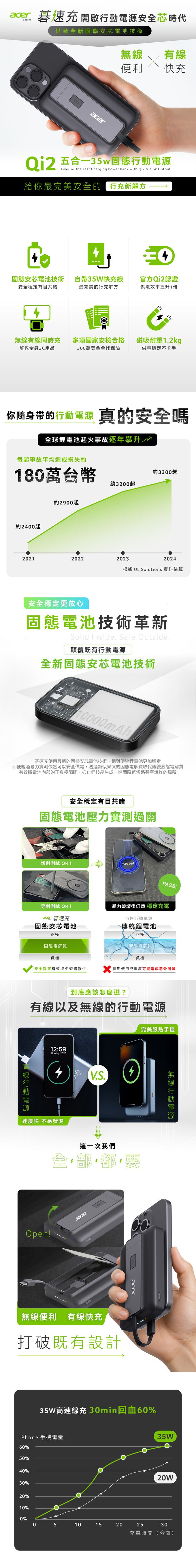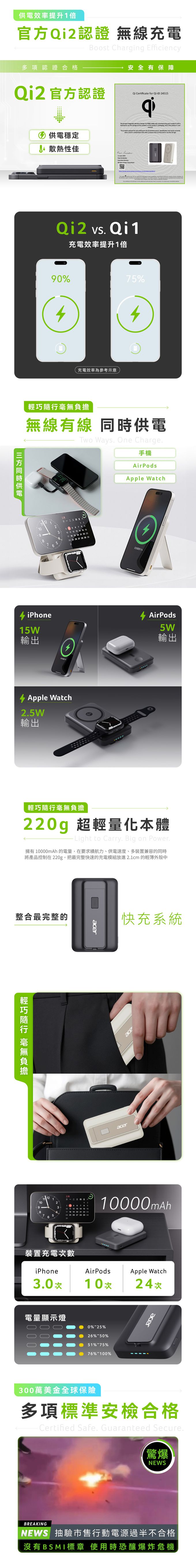 Acer 碁速充 Qi2 五合一 35W固態行動電源10000mAh