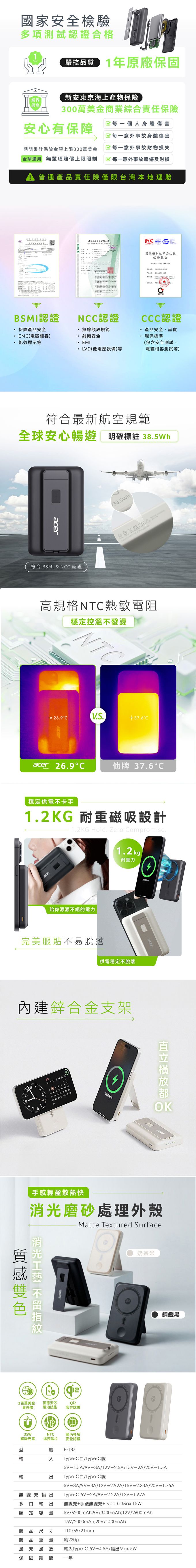 無線充輸出:Type-C:5V⎓2A/9V⎓2.22A/12V⎓1.67A