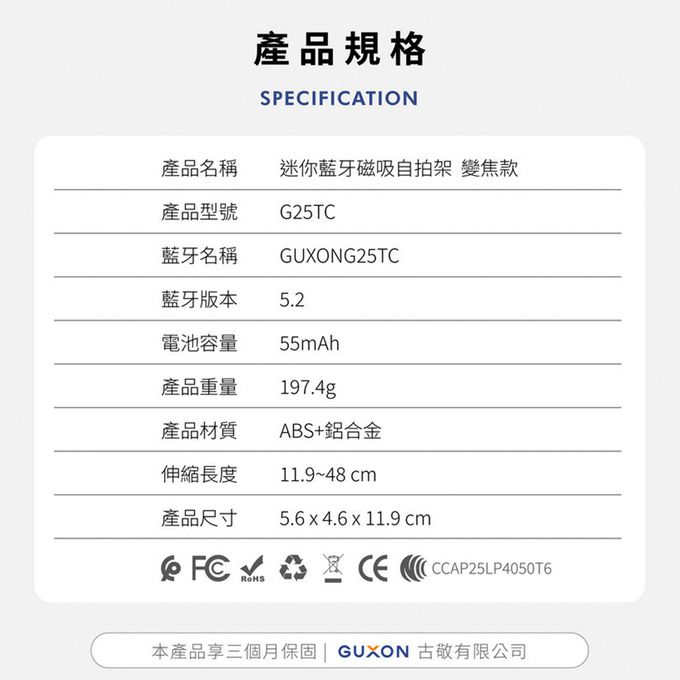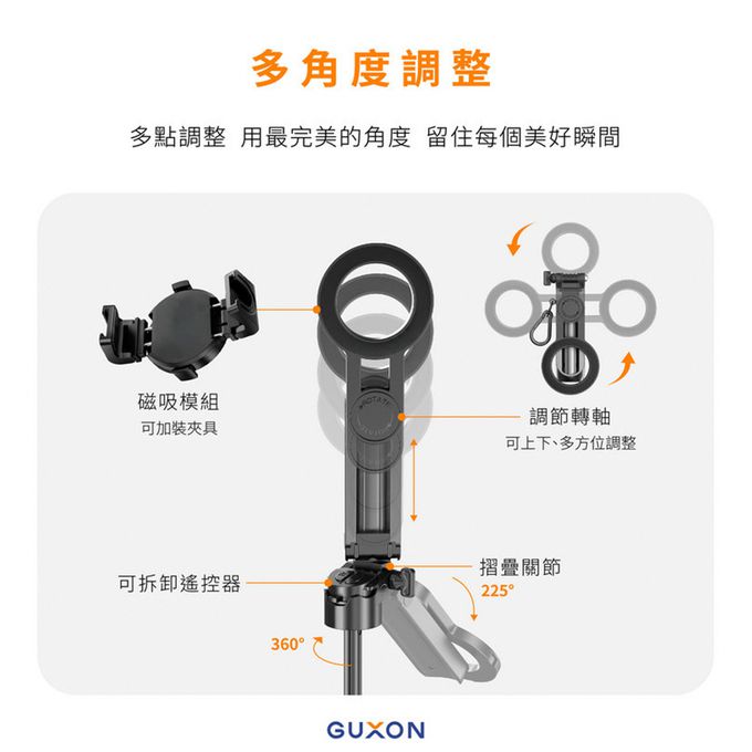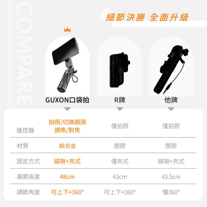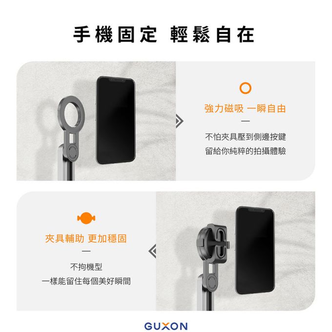 【GUXON古尚】口袋拍迷你藍牙磁吸自拍架 變焦款
