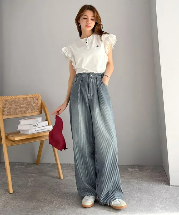 • 品名:mily bilet 復古條紋刷色寬鬆廓形丹寧褲
