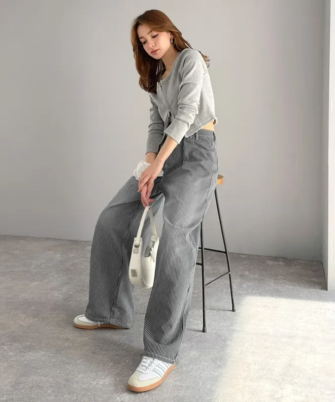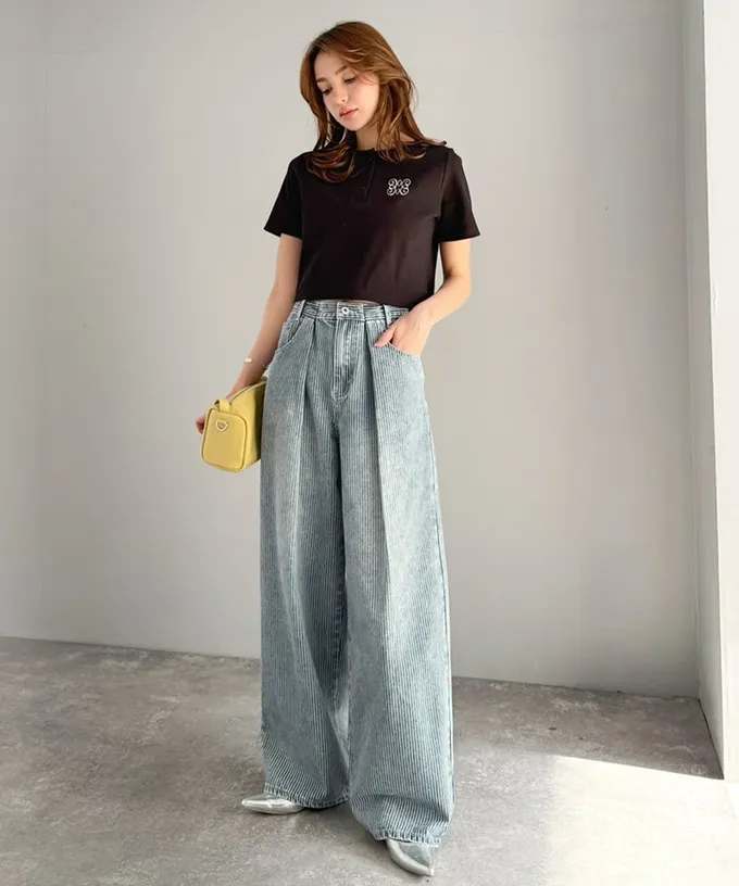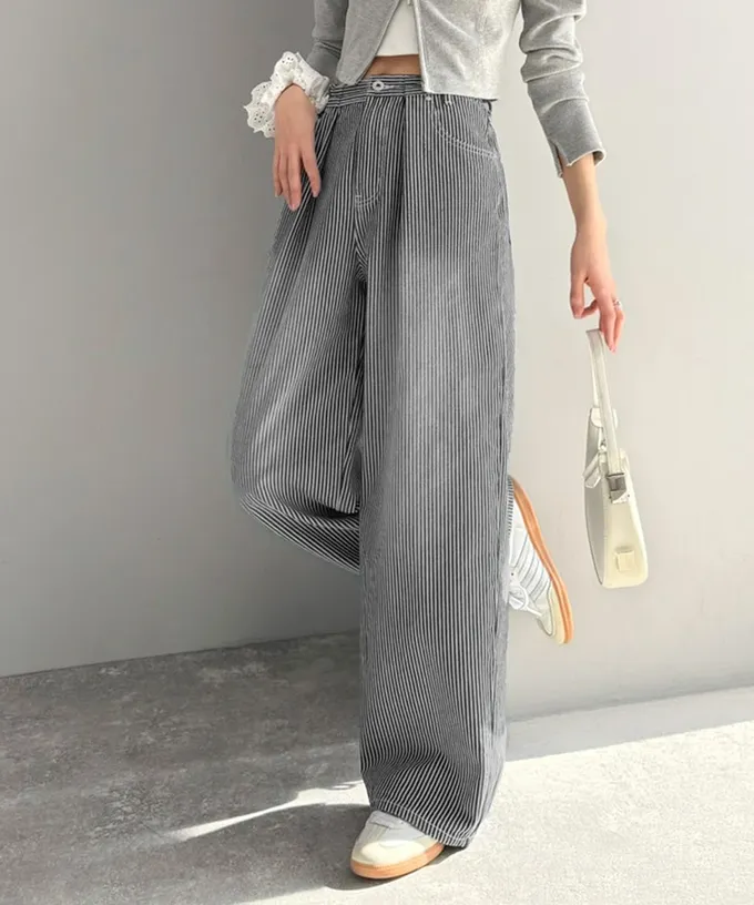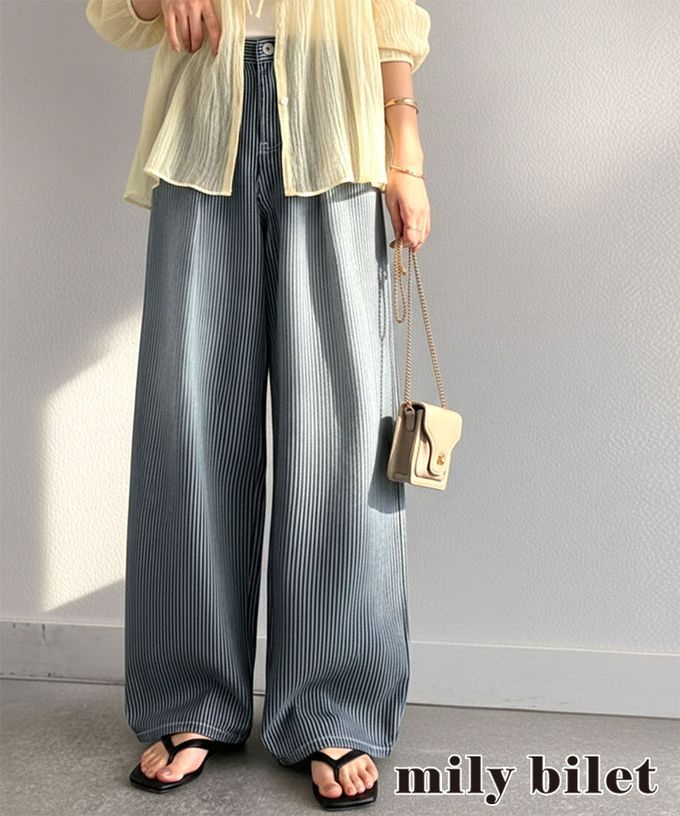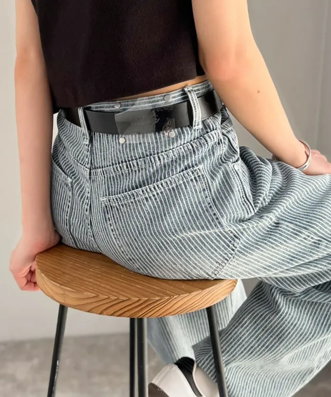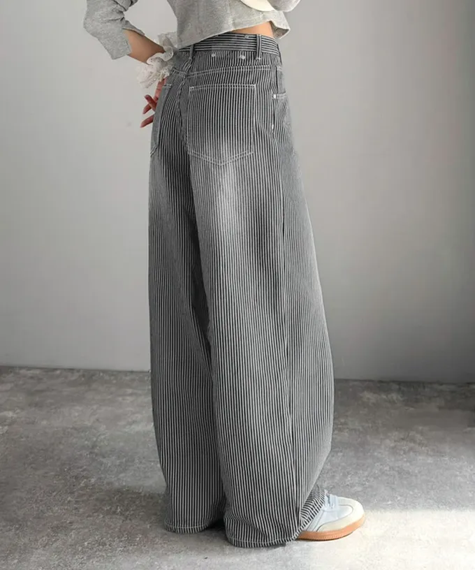 • 品名:mily bilet 復古條紋刷色寬鬆廓形丹寧褲