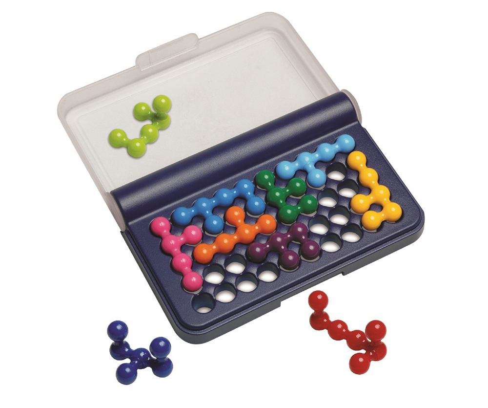 ■ 特殊立體設計的珠串,觀察遊戲盤底洞的位置進行解題。