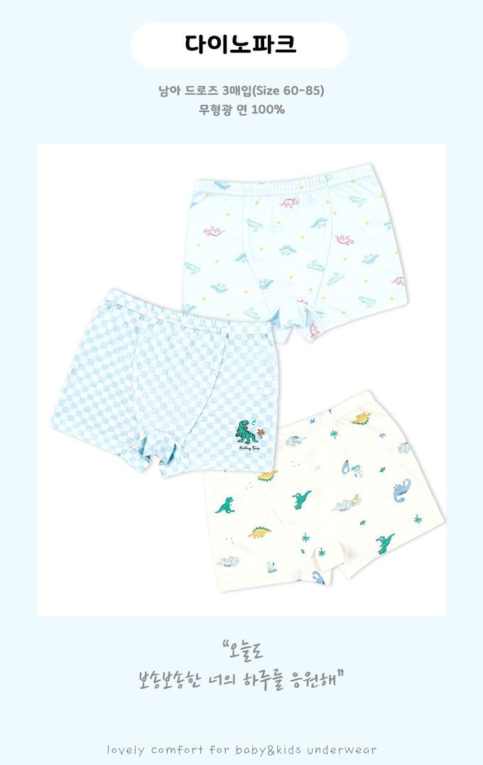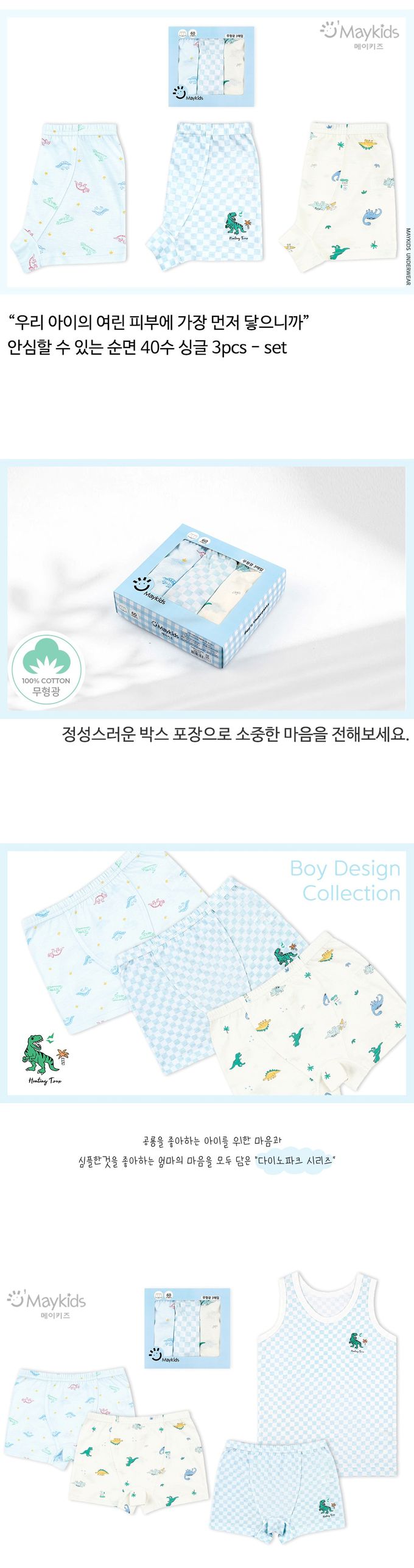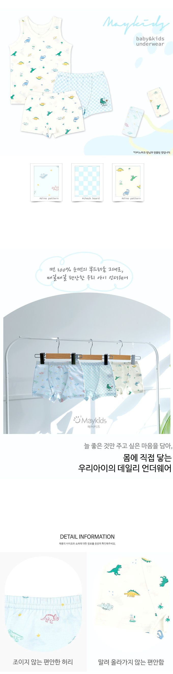 韓國 Maykids - (3入組)男寶無螢光輕柔棉四角褲-格紋彩色恐龍-米X淺藍