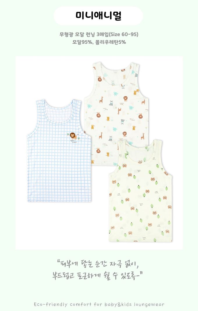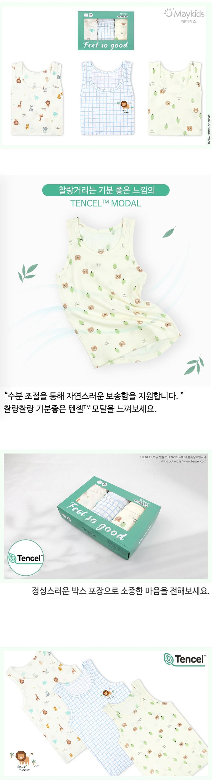 韓國 Maykids - (3入組)男寶天絲莫代爾透氣背心-格紋萌萌動物-米白X米黃X藍