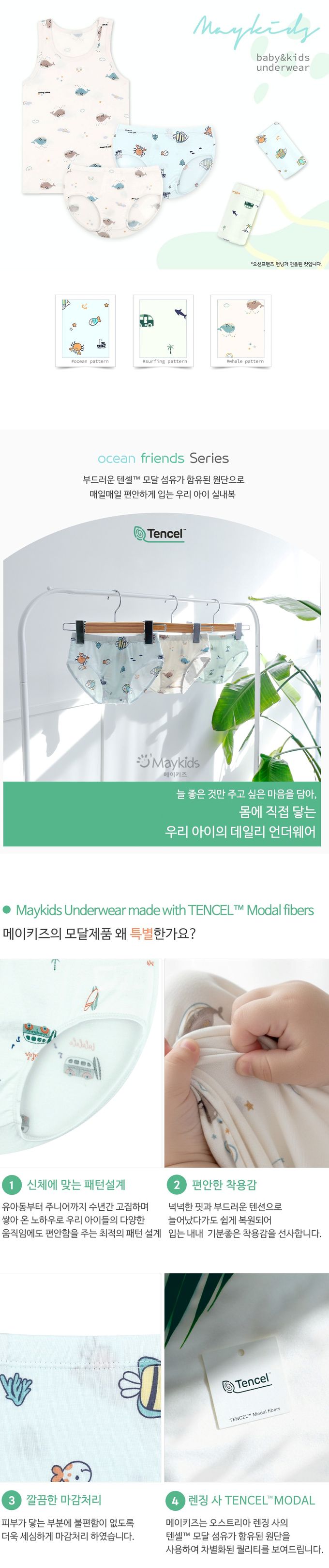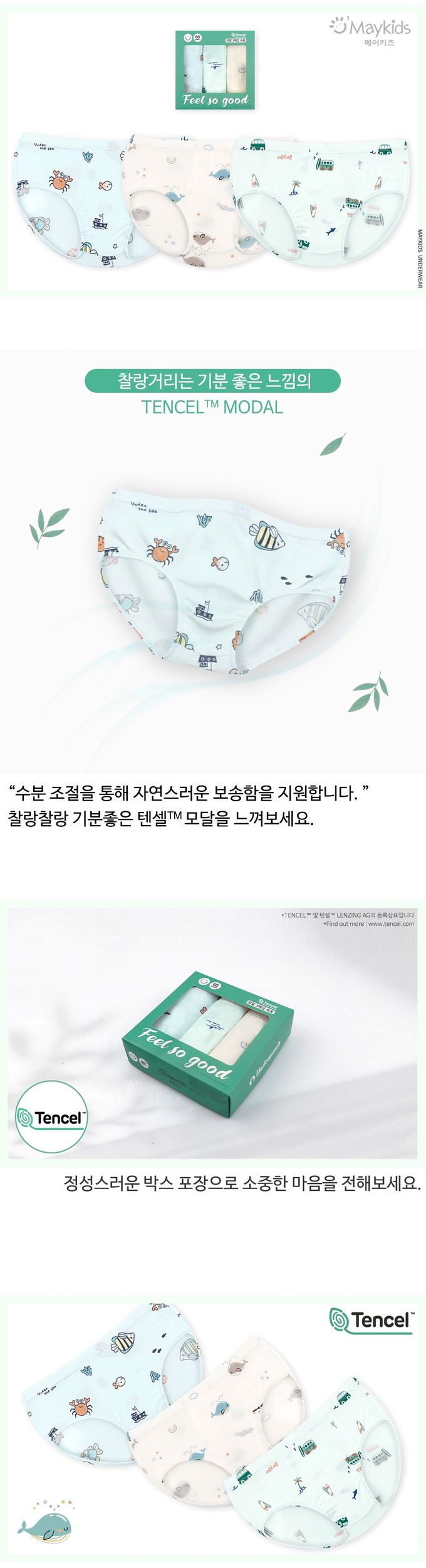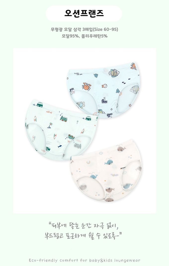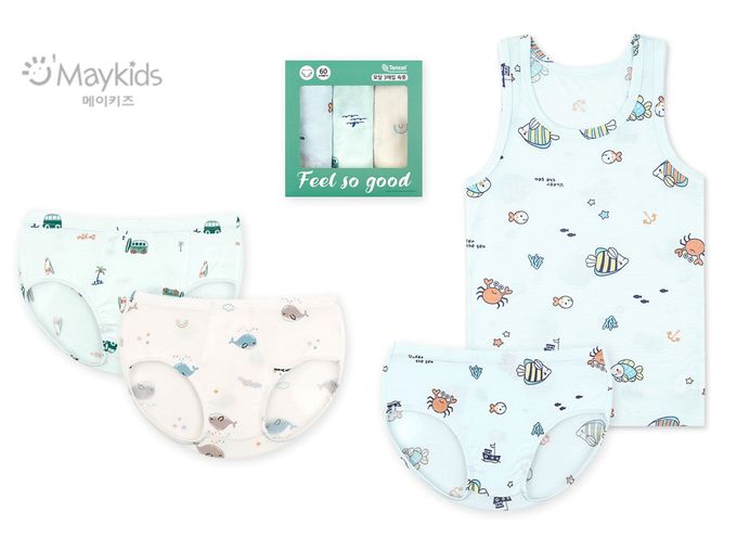 韓國 Maykids - (3入組)男寶天絲莫代爾透氣三角褲-海底動物們-米膚X淺綠X淺藍